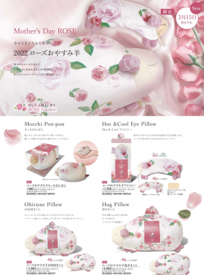 母の日の定番ギフトとなっている「ローズおやすみ羊」シリーズ。今年はやさしいローズのプリントに角の部分がローズになっているデザインです。