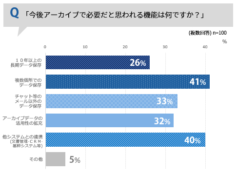 なお、今後、企業がアーカイブシステムに求める機能では、