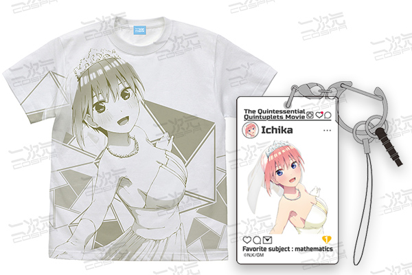『映画「五等分の花嫁」』より、ウェディングドレスを身にまとった中野一花・中野二乃・中野三玖・中野四葉・中野五月の「オールプリントTシャツ」「SNS風アクリルマルチキーホルダー」が二次元コスパから登場!