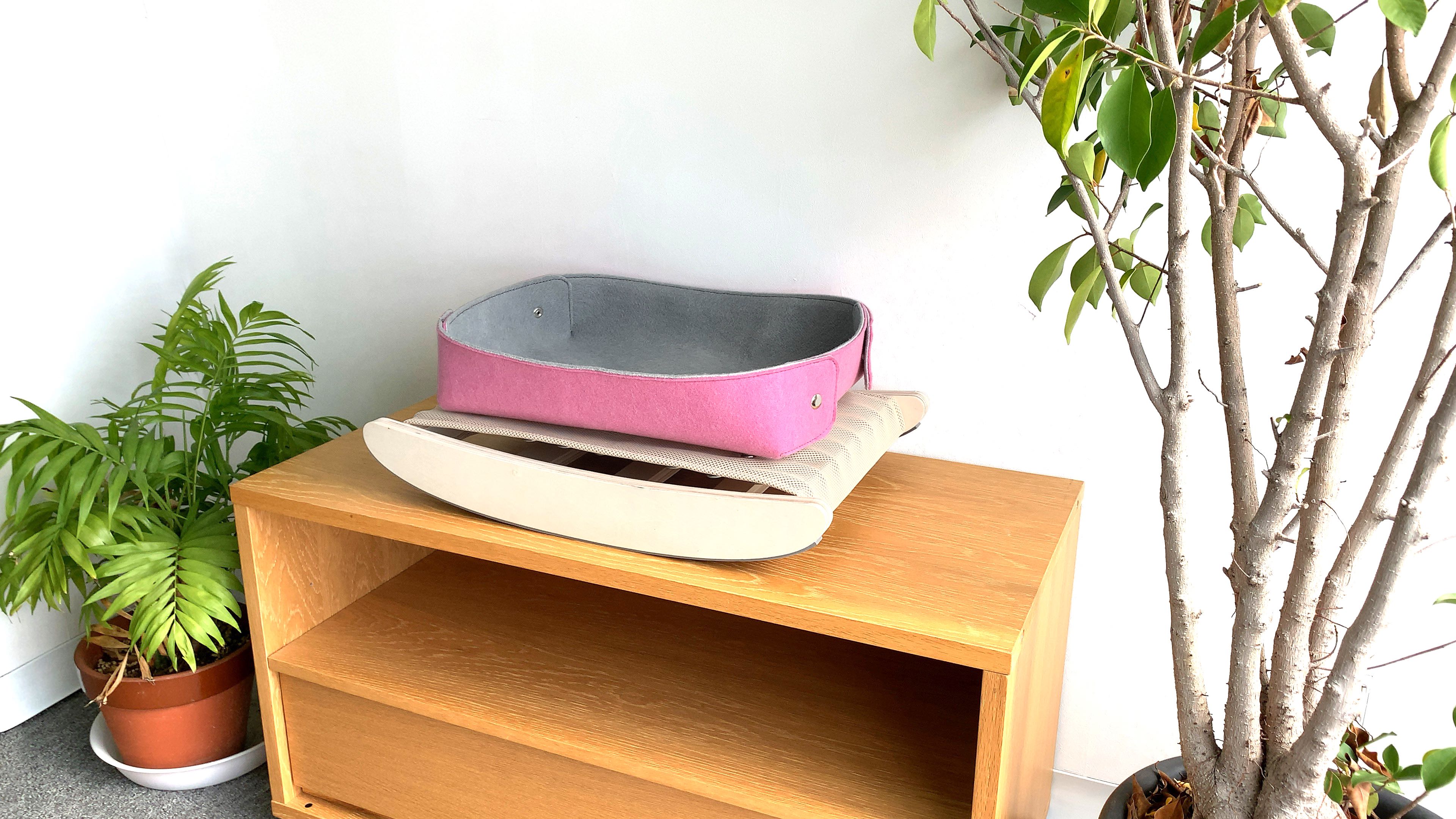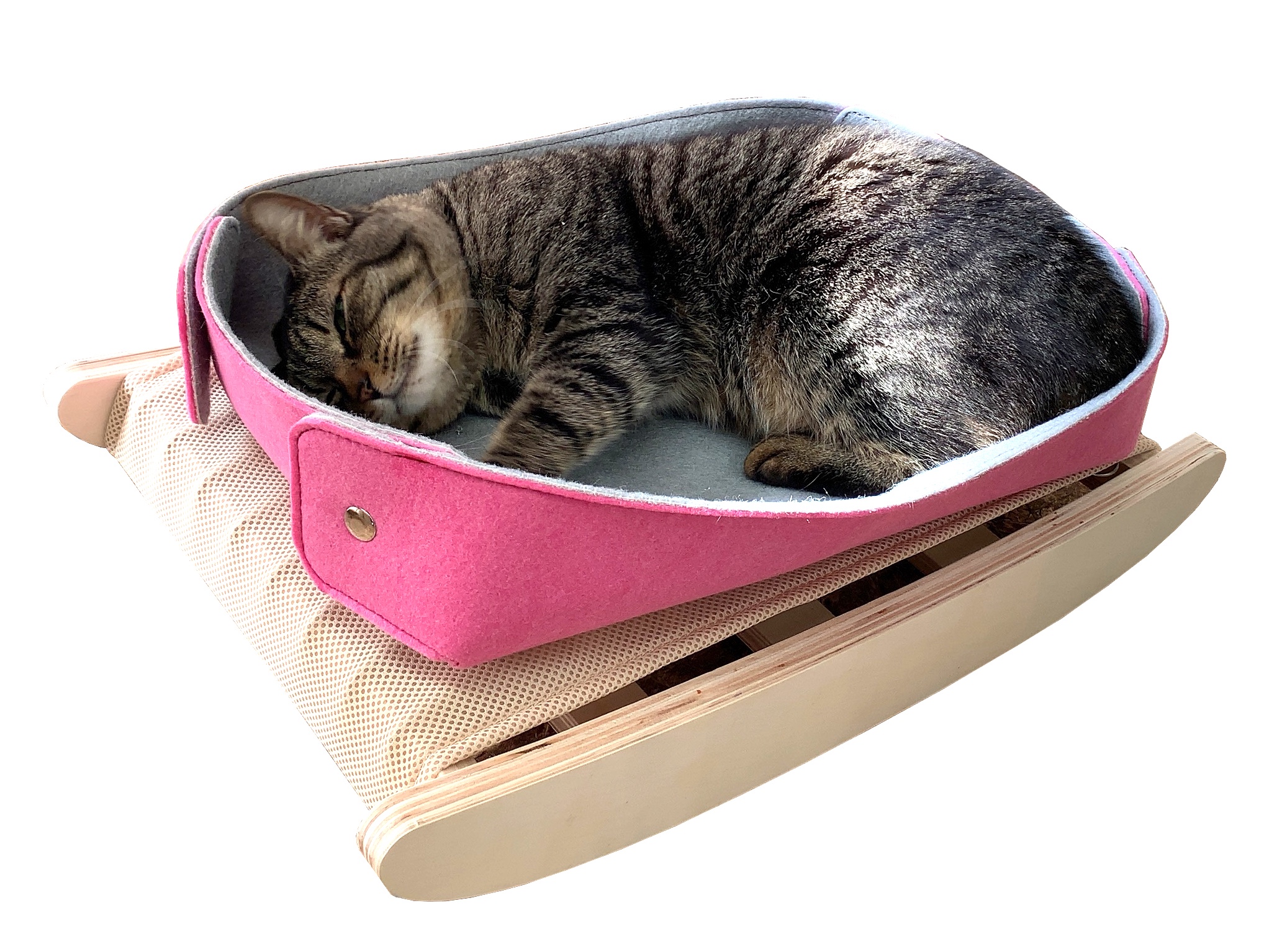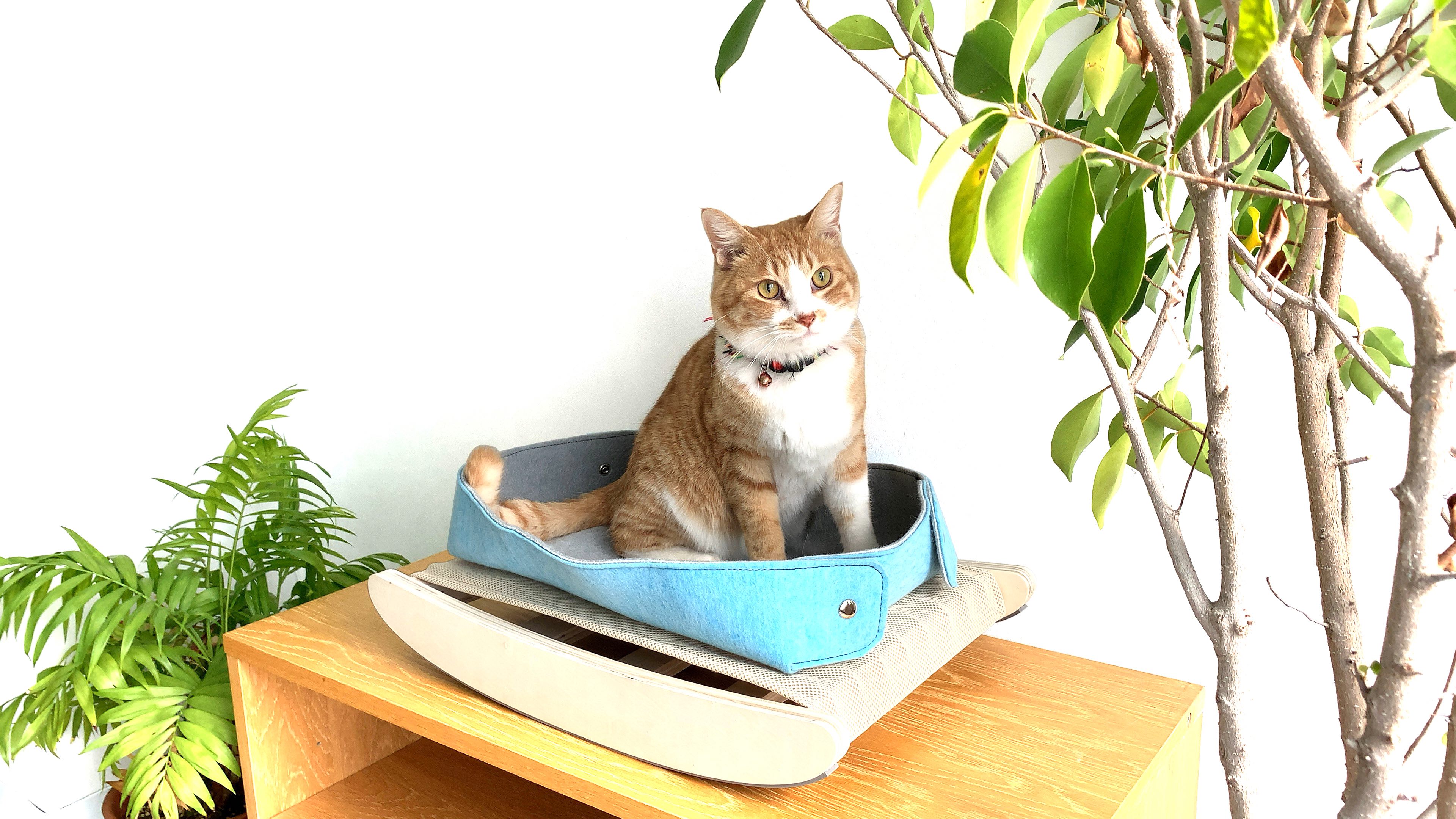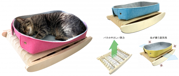 人のベッドのように猫のベッドにもばねを使ったら寝心地がもっと良くなるのでは?寝床を浮かせたらムレにくく、もっと清潔になるのでは?という猫がもっと快適に生活して欲しいという想いが込められた猫ベッドです。