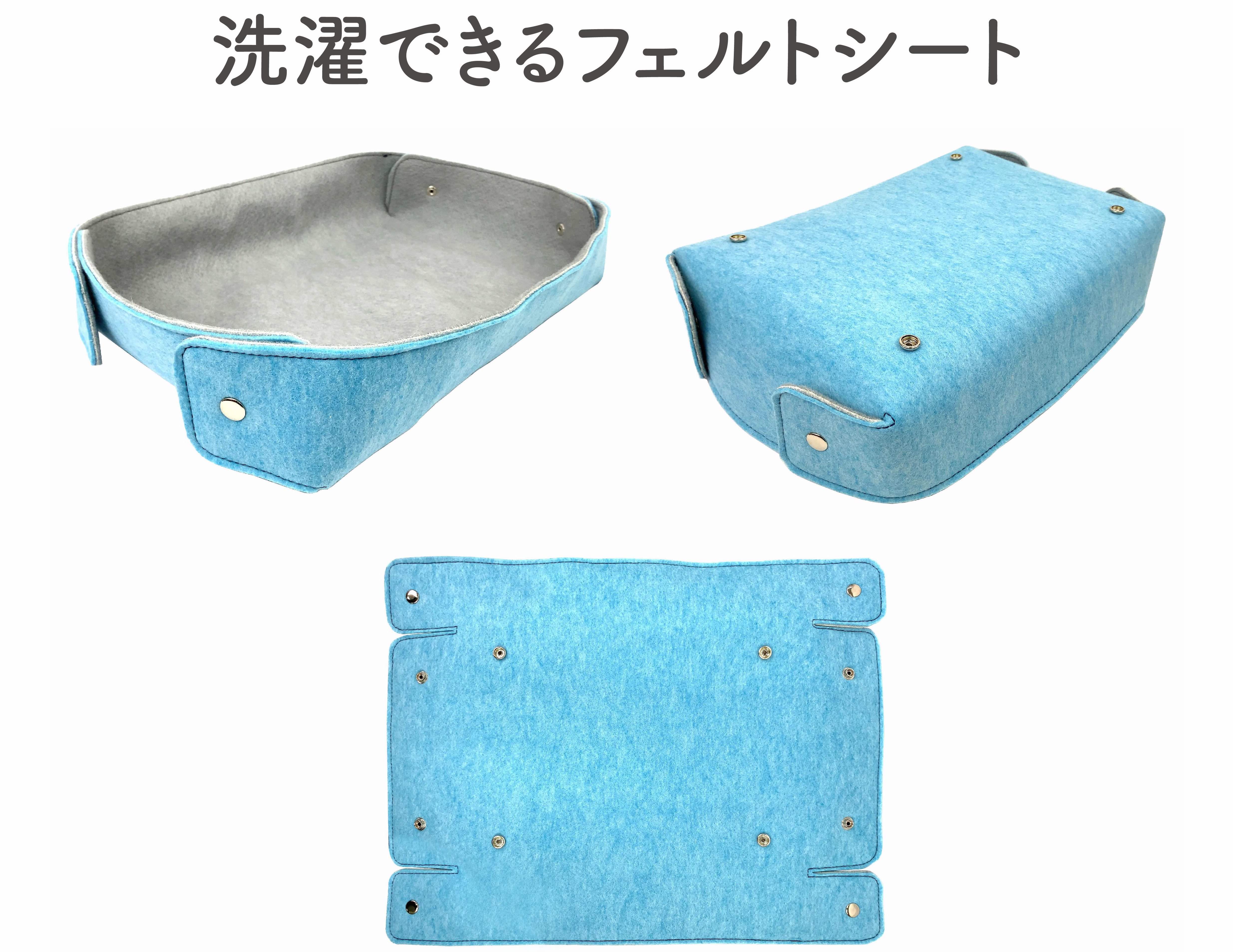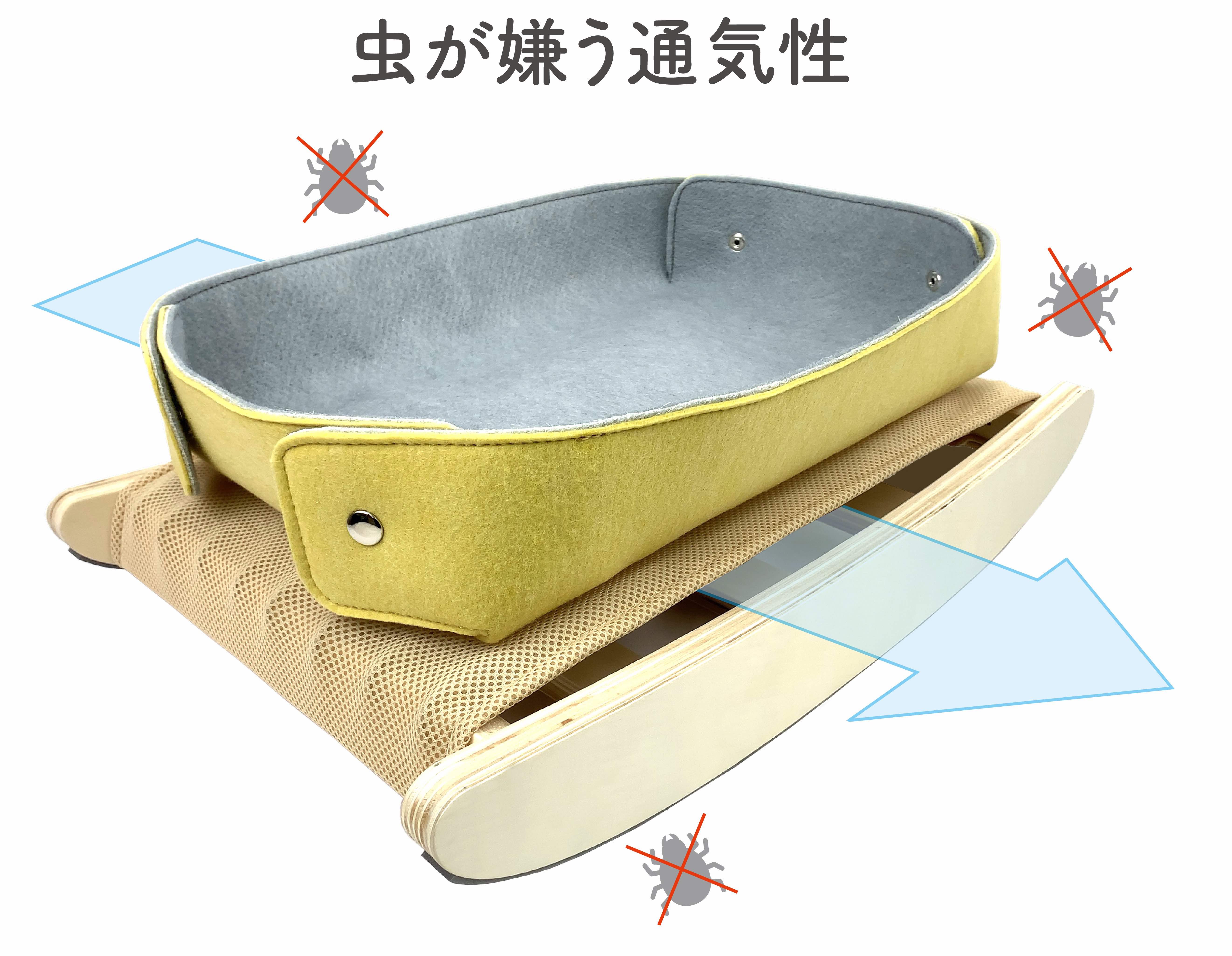 ばねの上にフェルトシートがあるため、ハンモックのように通気性が良くノミなどの虫が好む湿度を低くすることで虫の発生を抑える効果が高まります。