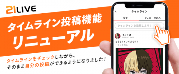 株式会社エムアンドティーティー(本社:沖縄県北谷町、代表取締役:井藤 三知子)が運営するエンターテイメント・ライブ配信サイト【21LIVE(ニーイチライブ)】URL: https://21.live は、2022年3月9日(水)に、タイムラインの投稿機能をリニューアル致します。