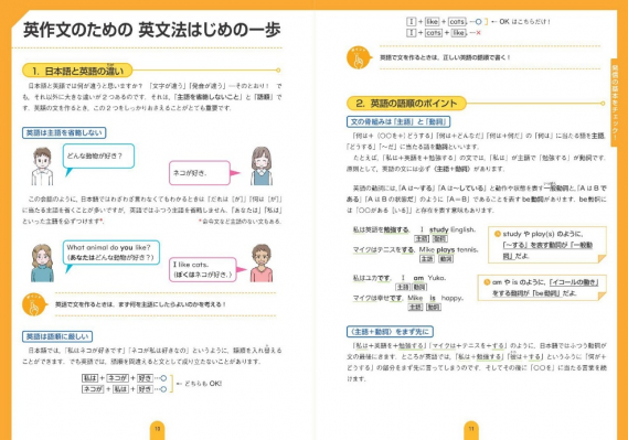 解説ページでは、英作文の基本とコツや、ライティング・スピーキングの実用例をイラスト入りで分かりやすく紹介。検定試験や手紙、スピーチやプレゼンテーションなどの際にご活用いただけます。