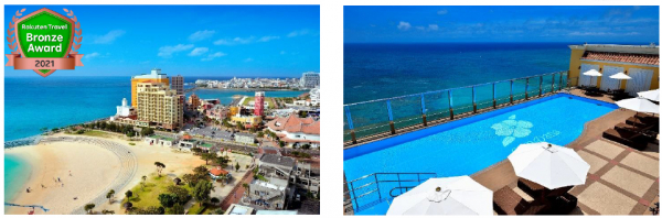 2020年に引き続き2年連続受賞いたしました。沖縄県北谷町にある「アメリカンビレッジ」の一角に位置しており、観光には最適。屋上プールと展望浴場は、海を眺めながらご利用いただけます。展望浴場にはサウナも完備しております。