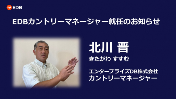 北川晋は2022年3月1日付でエンタープライズDB株式会社に入社し、EDBの日本担当カントリーマネージャーに就任いたしました。