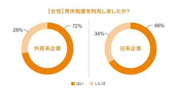 【育休取得率】外資系企業女性:72% 日系企業女性:66%