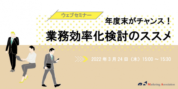 コールセンターサービスを提供しているマーケティングアソシエーション株式会社(本社:東京都台東区 代表取締役:相内あゆ美、以下当社)は、2022年3月24日(木)に、ウェビナー「年度末がチャンス!業務効率化検討のススメ」を開催いたします。