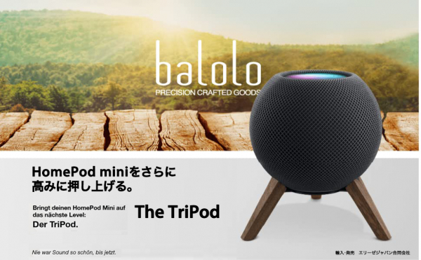 エリーゼジャパン合同会社(神奈川県横浜市 代表:ニコラ コタール)は、ドイツ balolo社製 Apple HomePod mini専用スタンド「balolo TriPod for Apple HomePod mini 」を2022年3月17日(木)より新発売致します。