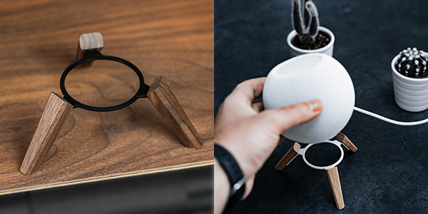 TriPodは、HomePod miniの単なるスタンドにとどまらない、HomePod miniをアップグレードするアクセサリです。HomePod miniとTriPodが一体になり、サウンドが遮られることなく広がります。音質を高めるために設計されたTriPodは、HomePod miniを3.5cmリフトアップした高さからより豊かな真の360度サウンドを実現します。直接テーブルに置く場合と比べ、周囲に置かれたものの影響を受けずに音がストレートに伝わります。木製の3脚に支えられることにより、中高音域まで淀みなく理想的なサウンドを体験できます。脚底に設置した振動防止コルクパッドが振動を吸収し、HomePod miniをしっかり支え、本来の美しいサウンドを再現します。