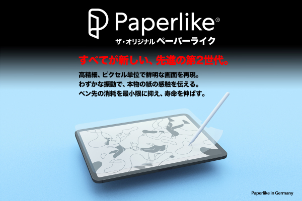 Paperlike iPadフィルムは、2017年に新しいカテゴリーを創造し、イノベーションを起こしたドイツのスタートアップが業界で初めてリリースしたオリジナルペーパーライクフィルムをアップデートした新製品です。 紙に書く感覚の精度がさらに高まり、チップの摩擦量を最小限に抑え、かつディスプレイを鮮明に再現します。 独自技術によって開発され、初代ペーパーライクフィルムの欠点を排除した革新的なフィルムです。