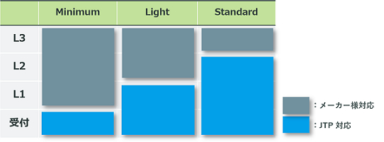 そこでJTPでは、ITメーカー様向けのテクニカルサポートサービス「Sprinta」(以下、本サービス)を、お客様の事業規模や対応レベルに合わせてお選びいただけるよう、3段階の料金プランで提供します。