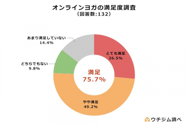 オンラインヨガの満足度について調査したところ、満足しているは「75.7%」でした。
