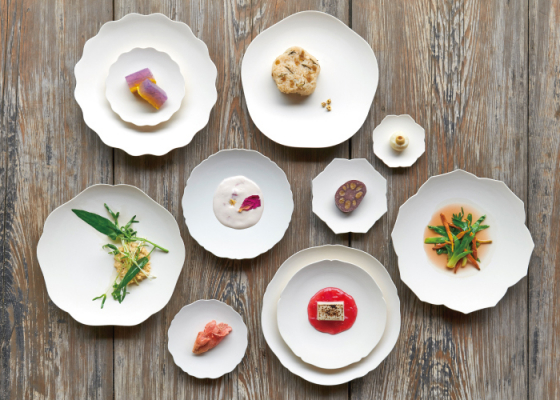 シンプルに図形化する「家紋」など古来の文様から着想を得て、花の輪郭を象った器は、和食・洋食問わずあらゆる料理を引き立ててくれます。毎日の食卓に。人が集まるシーンに。暮らしに温かく寄り添う佇まいは、大切な方との食卓を静かに心地よく包みこんでくれます。