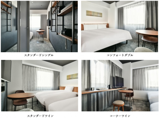 2階から14階の客室フロアには、13.7m2から19.0m2まで全5タイプ123室の客室を設けております。淡い色とシンプルな家具を組み合わせて、居心地の良い客室を提供いたします。全客室は禁煙で、Wi-Fiと有線LANを完備しております。HDMI接続が可能なテレビ、複数のデバイスの充電に便利な多数のコンセントなど、テレワークにも最適な空間となっております。