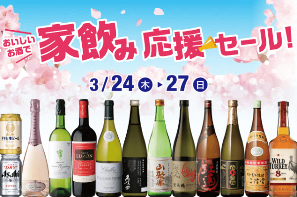 全国に184店舗で酒の専門店をチェーン展開する株式会社リカーマウンテン(本社:京都市)は、3月24日(木)~27日(水)の4日間、深夜営業店舗などを除く一部店舗で「おいしいお酒で家飲み応援セール」を開催いたします。