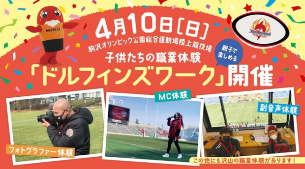 その一環として、4月10日(日)に駒沢オリンピック公園総合運動場陸上競技場で開催されるマツダスカイアクティブズ広島戦ホストゲームにて、小学生4年生以上を対象とした、スポーツ興行就業体験イベント「ドルフィンズワーク」を実施します。