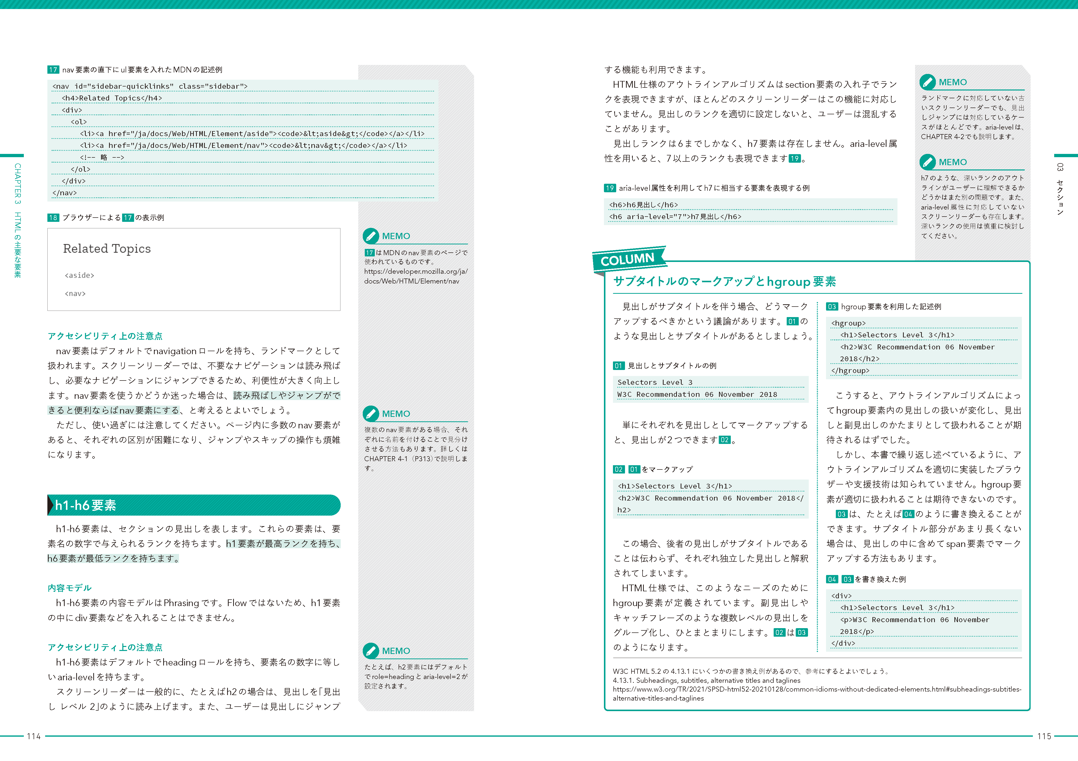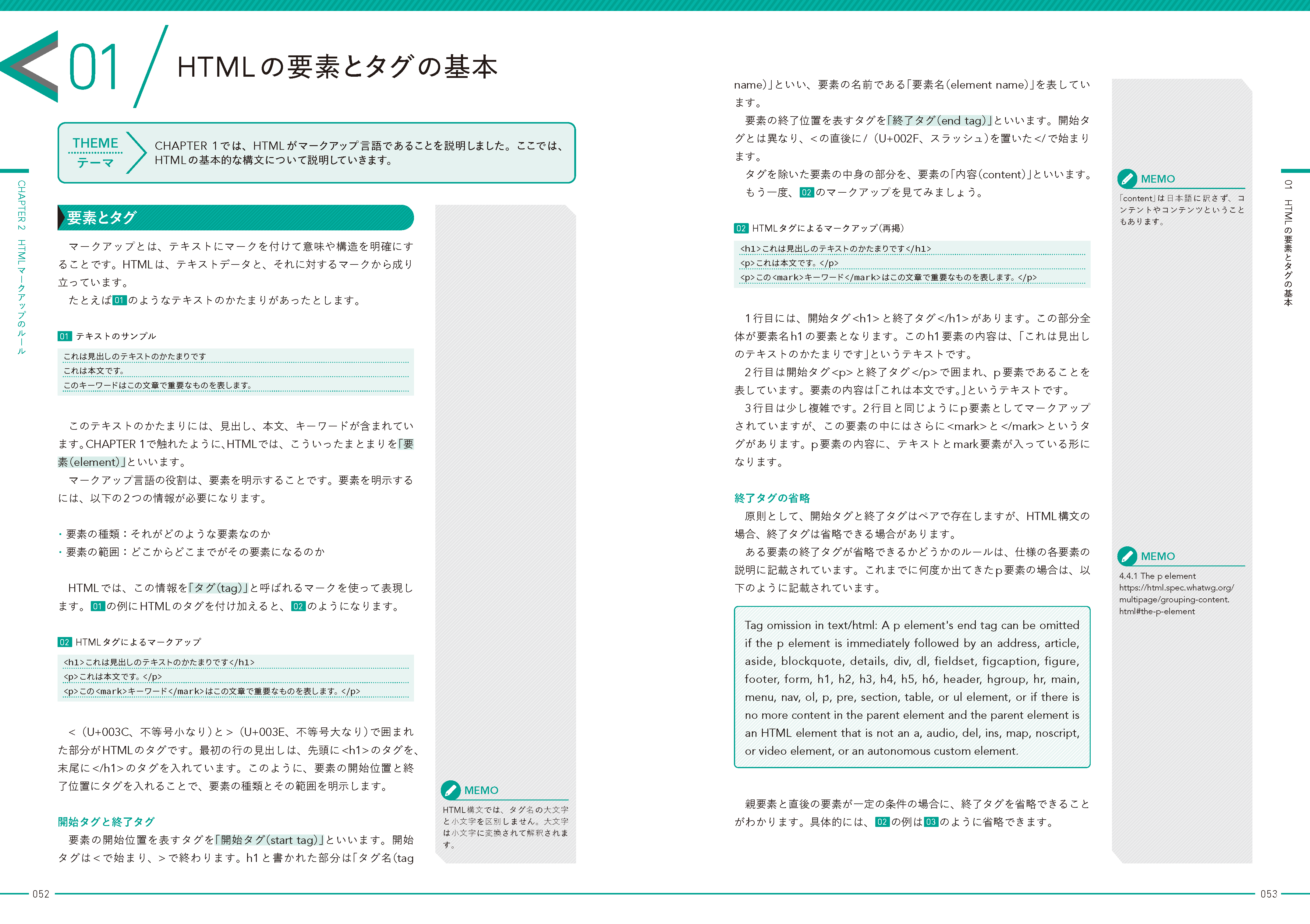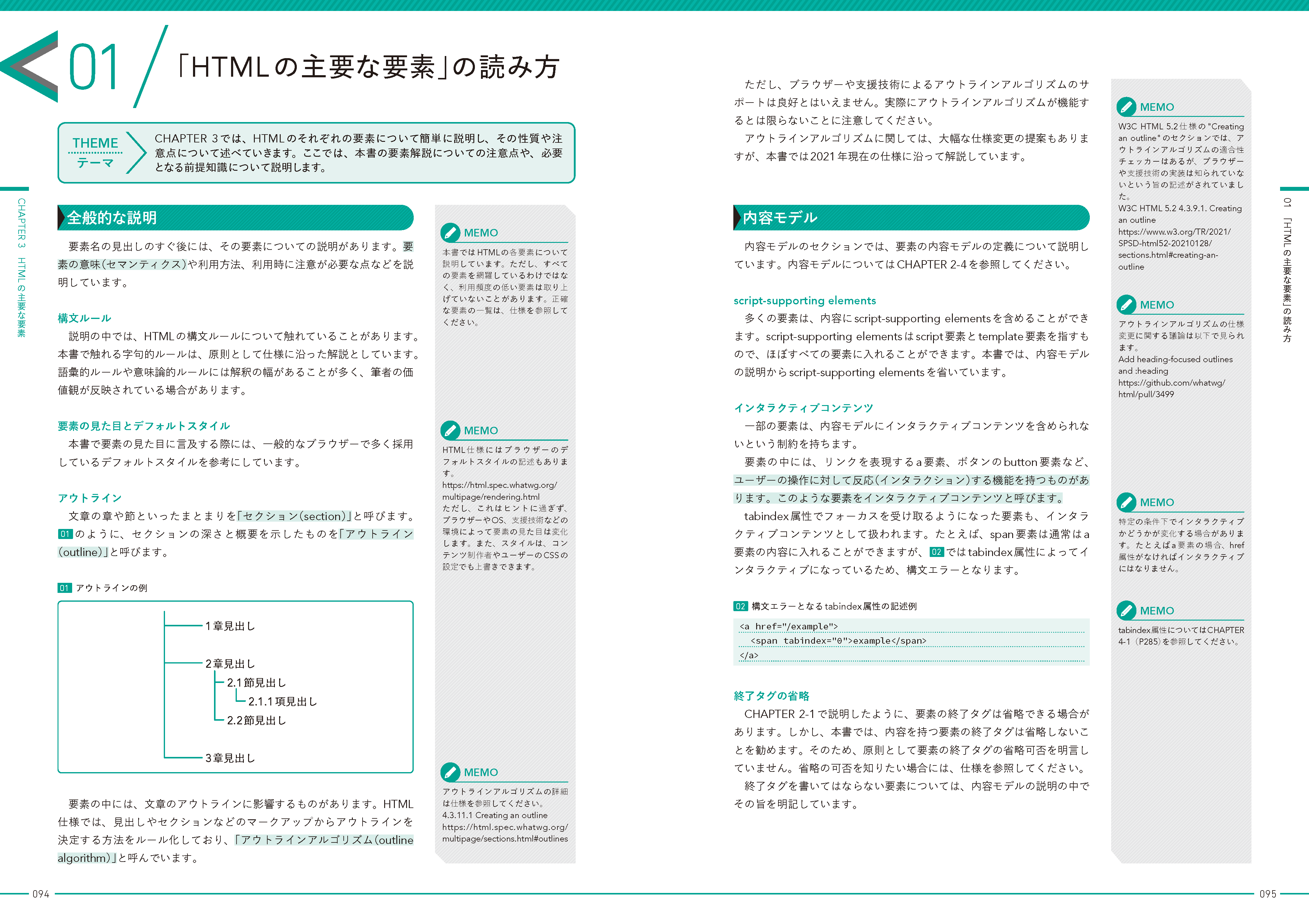 また、HTMLの究極の学習コンテンツはウェブ上で策定・公開されているHTML仕様といえますが、現在のHTML仕様は多数の前提知識が必要であり、中・上級者向けともいえます。