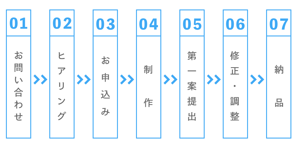 折り返し担当からご連絡させていただき、各サービスについてのご説明および、制作についてのご要望等をヒアリングいたします。内容にご納得いただけましたら正式にお申込みください。