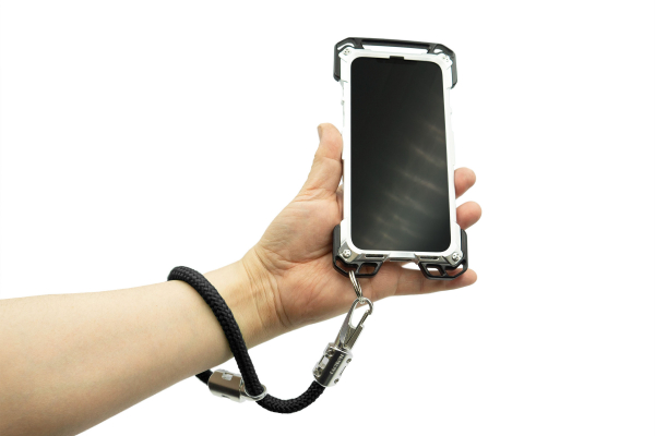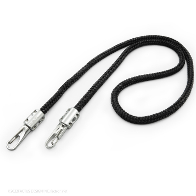 登山ロープや船舶用ロープにジュラルミン削り出しのフックを取り付けた、スマートフォンやミニバッグ等に使用できるストラップ。