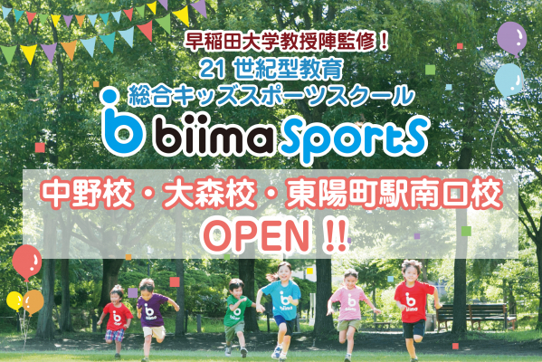 21世紀型教育の総合キッズスポーツスクール「biima sports(ビーマスポーツ)」(社名:株式会社 biima、本社:東京都渋谷区、代表取締役:田村恵彦)は、株式会社THINKフィットネス(本社:東京都江東区、代表取締役:手塚栄司)が運営する東京都の3箇所のGOLD’S GYMを活用し、2022年4月に「中野校」「大森校」「東陽町駅南口校」を新規開校いたします。