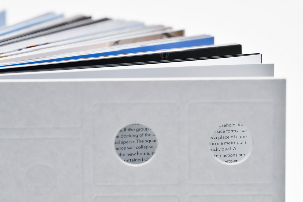 鈴木敏彦の「本も建築だ」という意図から、丸窓のある本を造りました。厚手の表紙の丸窓から1969年のカプセル宣言の文字がのぞきます。「竣工写真」を山田新次郎が撮り下ろしました。デザイナーの舟山貴士は、背中の糸綴りが見えるコデックス装で物質感を、厚手の表紙のエンボス加工でカプセル建築を、そして黒と銀色のカバーで中銀カプセルタワービルの当時の近未来感を表現しました。メタボリズム建築(新陳代謝)の思想を、持続可能性のある書籍として長く手元に置くことができる豪華愛蔵本に仕上がりました。