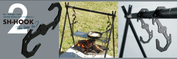 アイアンよりも強度に勝るスチールを採用したSH-HOOKIIは、焚火台周りでの使用に最適。