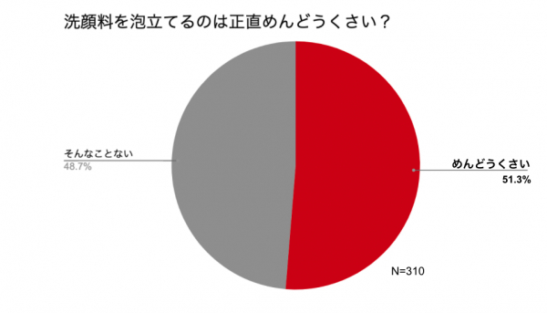 51.3%の男性が洗顔の泡立てに対して、特にめんどうと感じています。