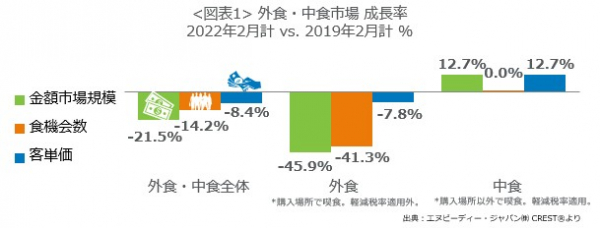 外食・中食市場情報サービス『CREST(R)*1』を提供するエヌピーディー・ジャパン株式会社(東京都港区、クリストス・クリストフォロー代表)は、外食・中食市場2022年2月の動向分析レポートを2022年4月11日に公表します。