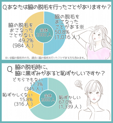 「どれくらいの方が脱毛時に脇の黒ずみが恥ずかしいと感じているのか」「実際に恥ずかしいと感じたエピソード」などを調査。