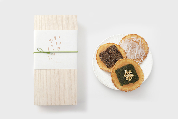 熟成三年の自家製味噌を使い、原材料もすべて国産で無添加。味噌の風味が上品でやさしい「味噌煎餅」に加え、爽やかな緑茶と甘く香ばしい飛騨産玄米をホワイトチョコレートで優しくコーティングした「緑茶玄米入り味噌煎餅」と、一粒一粒選別した上質な飛騨産えごまを混ぜ合わせた特製チョコを、味噌煎餅に塗って焼き上げた「えごま入り味噌煎餅」の3種を詰め合わせです。