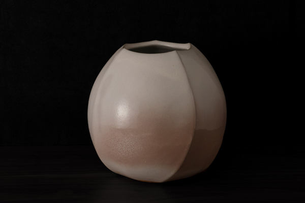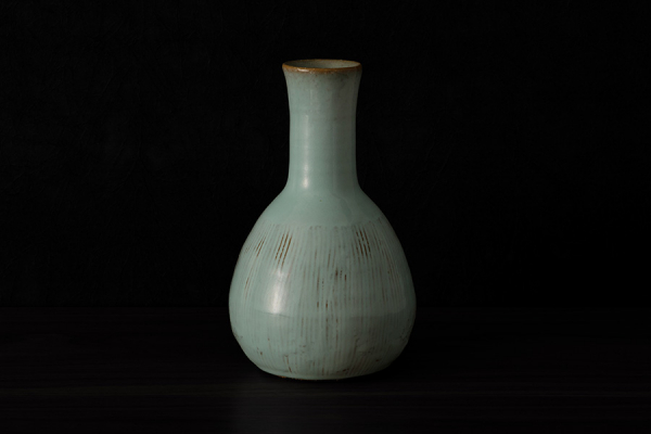 山口県には萩藩の御用窯を端緒とする約400年のやきものの歴史があります。萩焼はとりわけ茶の湯の陶器として高い評価を得てきました。岡田窯八代目の岡田裕氏は、萩市で地元の素材である大道土や白釉をベースに「炎彩」などの加飾技法も工夫し、温かみのある萩焼にエキゾチックな風情も加えています。裕氏の長男・泰氏は、父とともに作陶に取り組みながら、徹底した焼成温度のコントロールのもと、呈色材に銅を用いて無垢で澄んだ美しさを示す淡青釉の器を生み出しました。萩の土の特徴である柔らかな雰囲気を、父子がそれぞれの表現に生かす様子は、萩の現在を伝える新しい風を感じさせます。