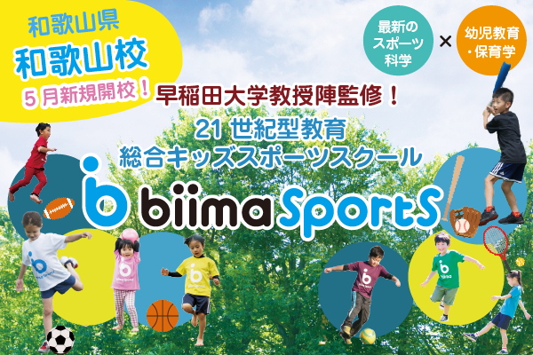 21世紀型総合キッズスポーツスクール「biima sports(ビーマスポーツ)」(社名:株式会社 biima、本社:東京都渋谷区、代表取締役:田村恵彦)は、2022年5月に、新たに「ワカヤマテニススクール」(社名:有限会社ナカムラテニスプラニング、所在地:和歌山県和歌山市、代表取締役 神前 真治)とパートナーシップ契約を締結し、和歌山県に和歌山校を新規開校いたします。和歌山県には初開校となり、全国150カ所以上の展開となります。