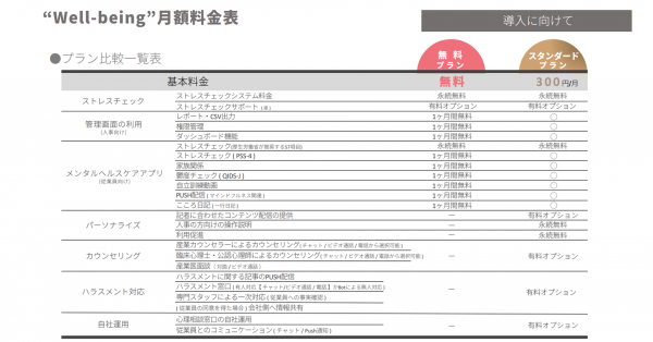 ・プロフェッショナルプラン:月額60,000円。従業員の健康の向上をサポートします。