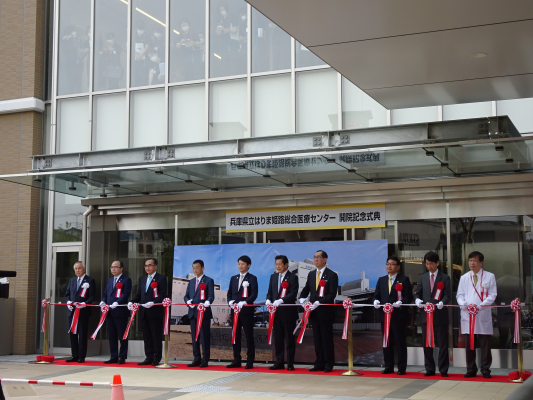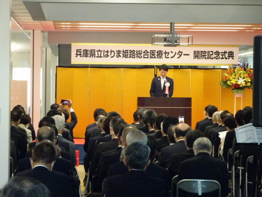 藤井電機は、令和4年4月23日に行われた兵庫県主催の兵庫県立はりま姫路総合医療センターの開院記念式典に招待され、出席しました。当日は齋藤兵庫県知事をはじめ、政界、医療関係者ら約250人が参加、地元高校生による記念演奏から始まり、齋藤兵庫県知事や藤本兵庫県議会議長、清元姫路市長のあいさつ、診療機能やスタッフの紹介など盛大に執り行われました。式典の後には内覧会もあり、最新、最先端の医療設備を見学させて頂き、医療機器、医療技術の進歩に驚くと共に心強さを感じました。