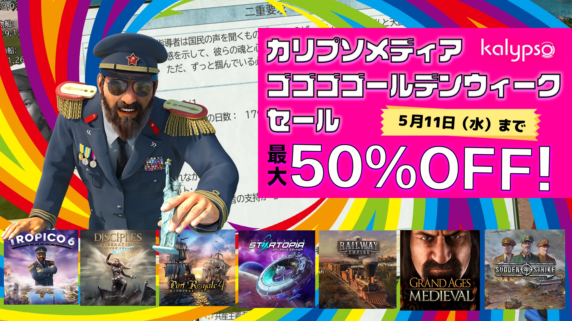 Kalypso Media Japan株式会社(本社:東京都渋谷区、以下、カリプソメディアジャパン)は、4月27日よりPlayStation Storeにて、本日4月28日よりニンテンドーeショップにて、『カリプソメディア ゴールデンウィークセール』を開始いたしました。