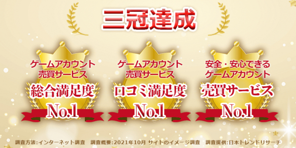 『ゲームアカウント売買サービス 総合満足度No.1』