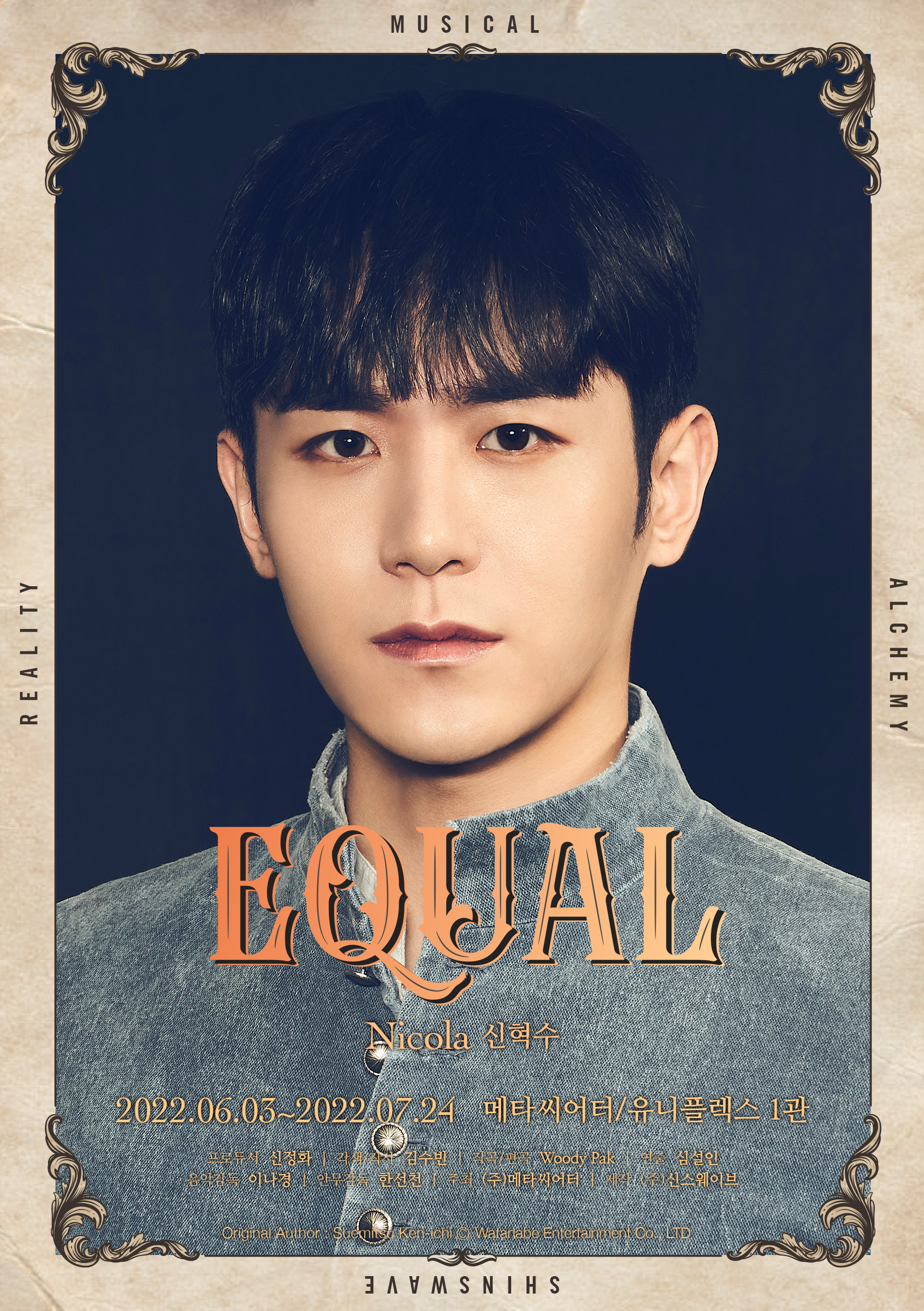 株式会社SHINsWAVE(韓国ソウル鐘路区 代表:シン・ジョンファ)は、自社が制作する(主催:METATHEATER)創作ミュージカル『EQUAL』(読み:イコール)の、 キャラクターポスターと共に韓国公演の1次チケットOPENスケジュールを4月29日(金)公開した。