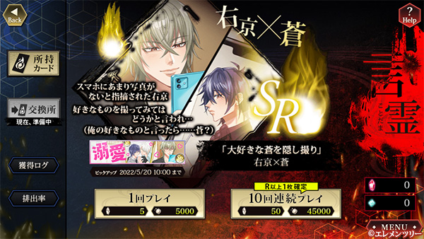 言霊では、「アナG」や「珠玉」を使用して「カード」を獲得することができます。