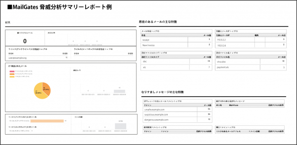 今回のバージョン6では、以前から実装されていたウイルスや詐欺・フィッシングメール・危険なURLなどを統計する機能に加え、自社の攻撃状況の詳細がわかるレポート機能を追加いたします。システム担当者やコンプライアンス担当者が、詳細レポート機能をチェックすることで、自社の中で誰がどのような外部からの攻撃を受けているか把握することが可能になります。外部から企業に対する攻撃はメールを起点とするものが多く、本レポート機能を駆使すると外部からの攻撃に対する早期発見・対応ができるようになり、コンプライアンス強化につながります。