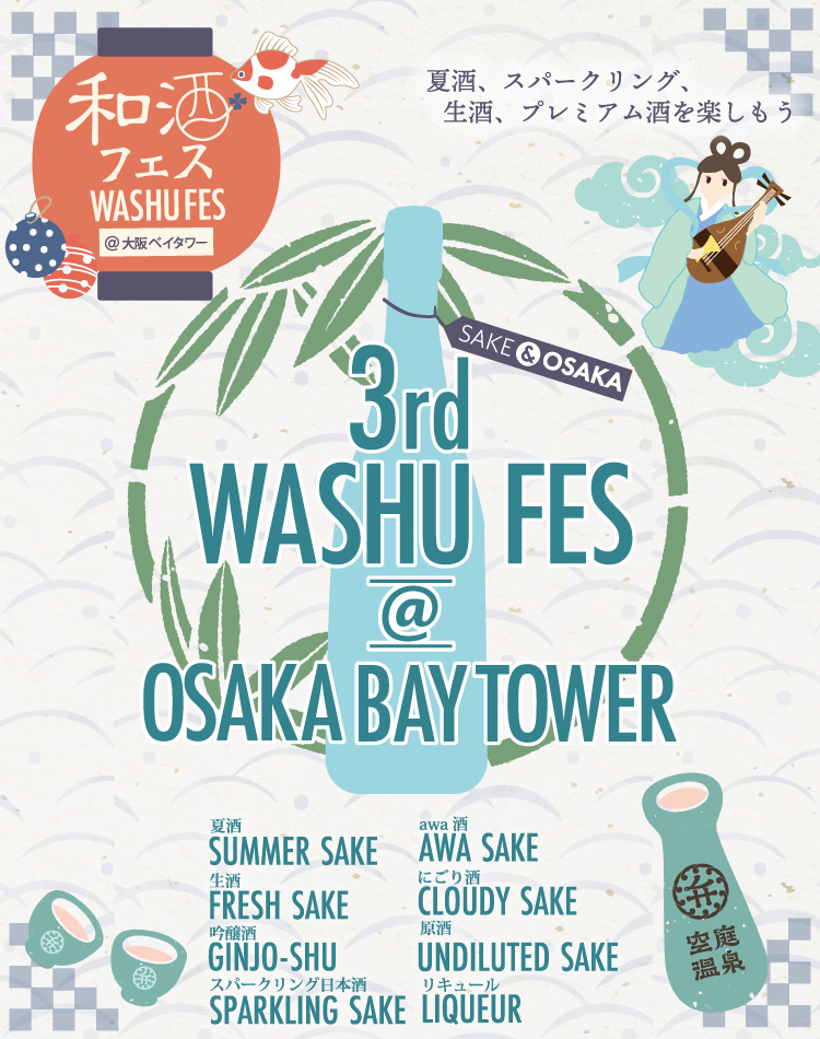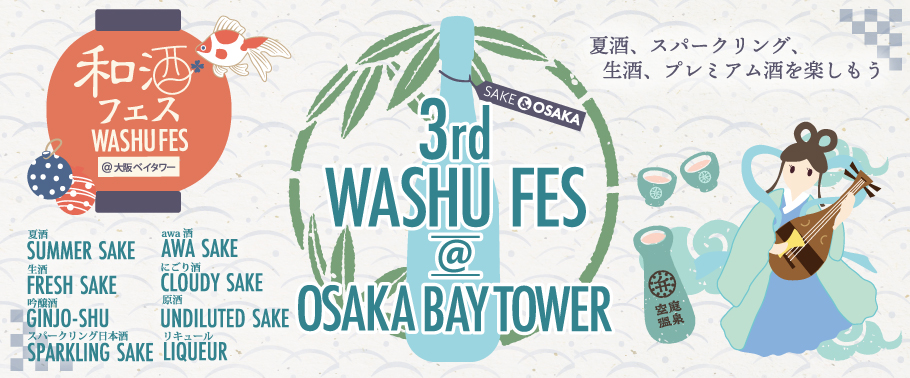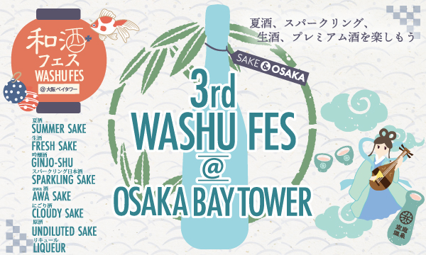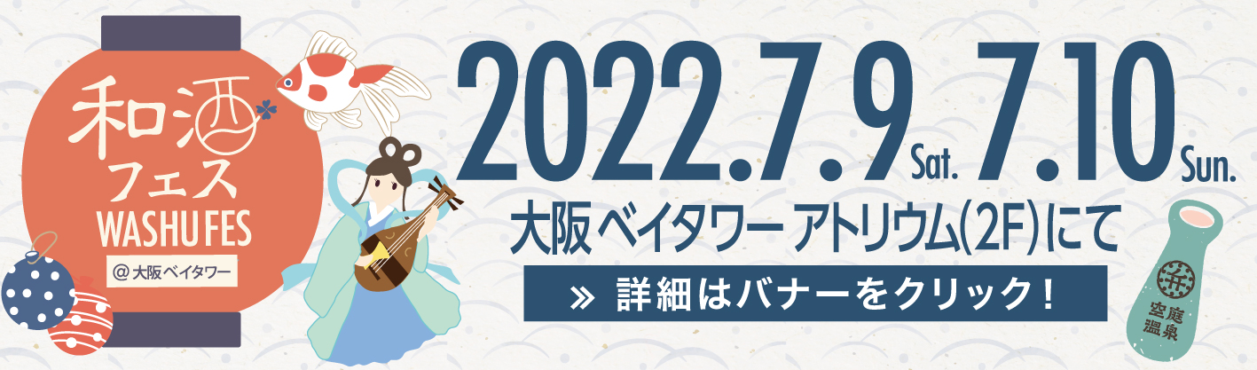 和酒フェス大阪実行委員会は、「第3回和酒フェス@大阪ベイタワー」を大阪環状線と大阪メトロ中央線の「弁天町駅」に直結する大阪ベイタワー・アトリウム(大阪市港区)にて、7月9日(土)、10日(日)に、第1部は12時30分から14時45分、第2部は15時30分から17時45分の時間で開催いたします。後援は、観光庁と国税庁になります。