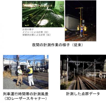 (c) 3Dレーザースキャナーを活用することにより、列車が運行する日中帯においても計測作業が可能となり、夜間作業削減等の働き方改善が期待できます。