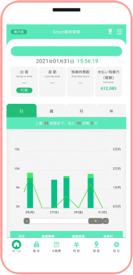内容 : 利用者の勤務状況等をリアルタイムで集計などを行う勤怠管理システムです。