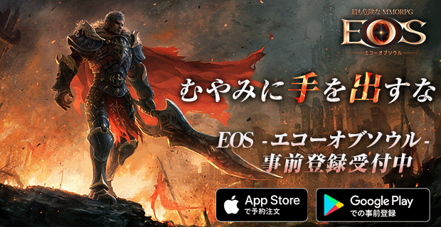 EOSは、韓国を始め世界60カ国へ展開しているPC向けMMORPG「ECHO OF SOUL」のIPをベースに開発されたスマートフォン向けのゲームアプリです。「ECHO OF SOUL」の50年後の世界という設定や、自由にトレードできるシステムの導入、核心コンテンツともいえる「ダンジョン」を再構築、そのほか、攻城戦はもちろん、プレイヤーが全員アタッカーという攻撃性を重視したゲームという特徴がございます。