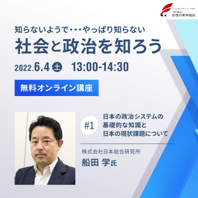 女性リーダー育成支援を行っている一般社団法人女性の実学協会(所在地:東京都港区、代表理事:日野佳恵子)は、2022年6月4日(土)に無料オンライン講座「社会と政治を知ろう」を開催いたします。