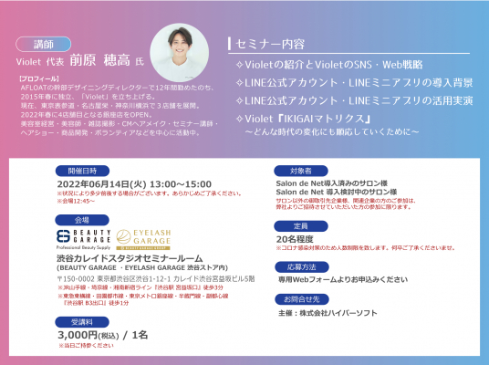 美容サロン向けにLINEを中心としたSNS・Web戦略セミナーの開催が決定した事をお知らせいたします。
