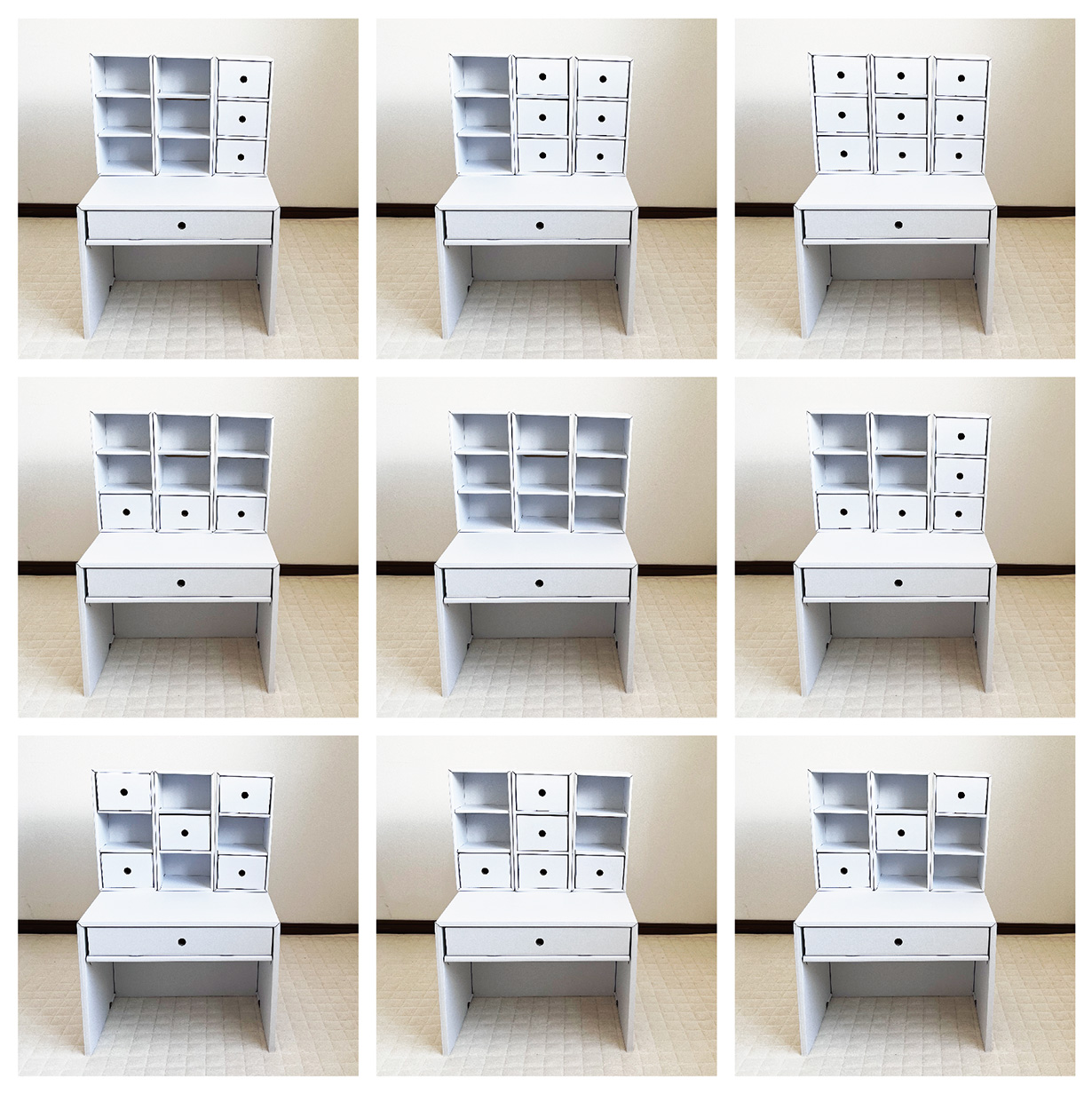 全て段ボールで出来ているので、とても軽く持ち運びも楽々。引っ越し等で不要になった際も簡単に処分が出来ます。