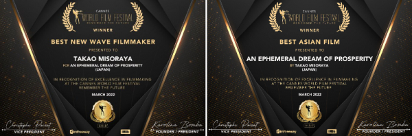 株式会社グッドラックスリー(本社:福岡県福岡市、代表取締役社長:井上和久、以下「グッドラックスリー」)は、株式会社明治産業、以下「明治産業」と共同で制作した映画『邯鄲の夢』(監督:三天屋多嘉雄)がCannes World Film FestivalにてBEST ASIAN FILM(アジア部門)、BEST NEWWAVE FILM MAKER(ニューウェーブフィルムメーカー部門)の二部門で月間最優秀賞(2022年3月期)を2022年4月28日に受賞したことをお知らせいたします。
