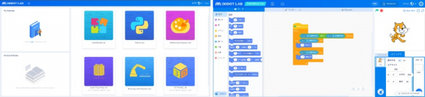 また、DobotLabはPythonの拡張ライブラリや、スプライトや各種拡張機能を含むScratchライブラリとの連携に対応しているため、DOBOT センサ学習キットと組み合わせる事で、さらに拡張性を広げることができます。