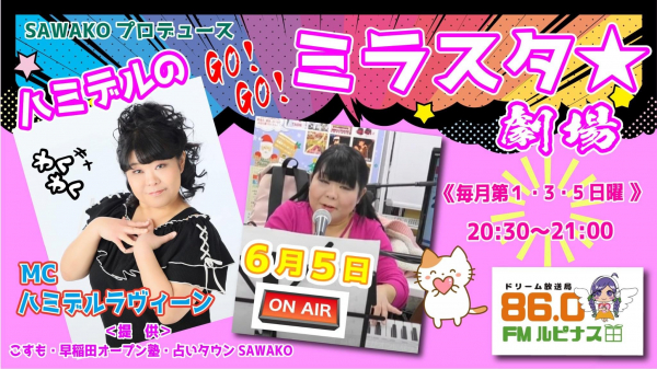 ドリーム放送局「FMルピナス」(加藤貴博局長)で6月5日、20時30分から「ハミデルの歌って語るGOGO!!ミラスタ☆劇場」を生放送します。