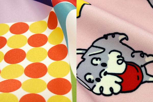 各種生地は、「昇華転写」という方法で加工しており、フルカラープリントも鮮やかに仕上がります。耐水性にも優れ、洗濯を繰り返しても色落ちの心配がないため、いつまでも綺麗なデザインが楽しめます。